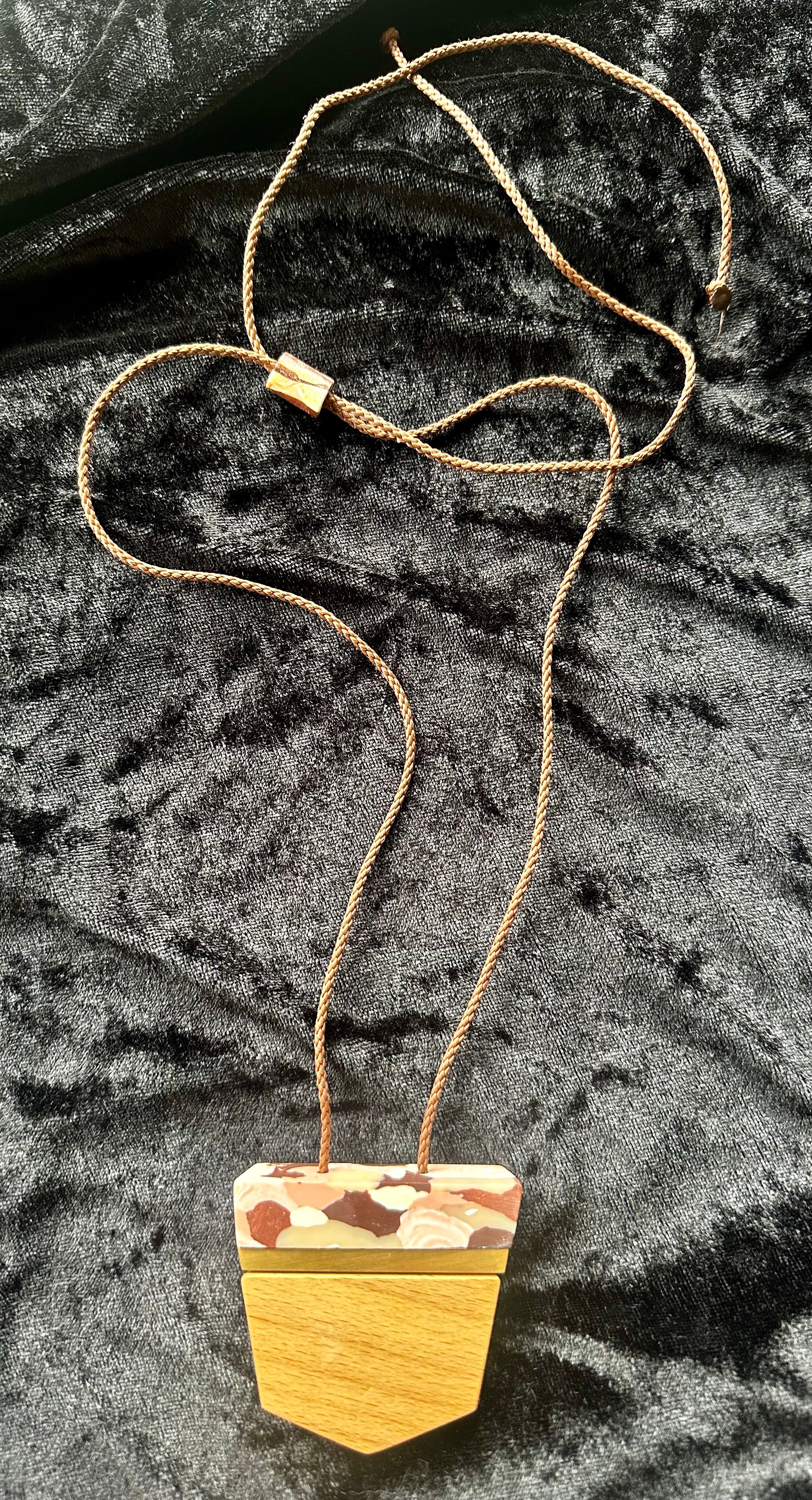 Facet Wood + Terrazzo Clay + Beads Pendant